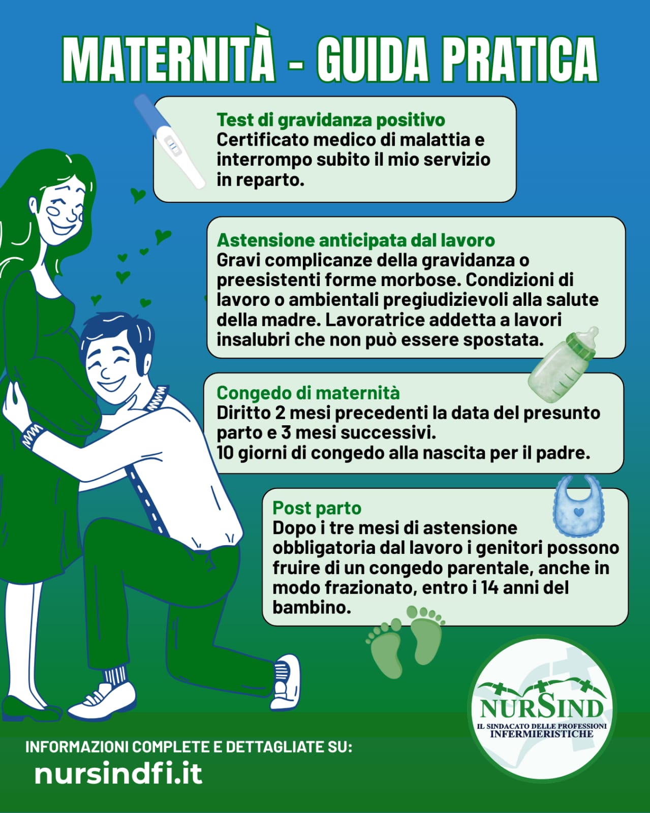 La presente guida pratica ha lo scopo di guidare, dal punto di vista normativo e di diritti, nel difficile percorso della maternità accompagnando le neo mamme dal momento in cui scoprono di aspettare un bambino fino a dopo la nascita. La guida non è del tutto esaustiva ma rappresenta, secondo il nostro parere, una valida traccia per i vari step della gravidanza raccontando, nel modo più semplice possibile, cosa fare nelle varie fasi della gravidanza. Dopo questa breve premessa non ci resta altro che augurarvi un enorme in bocca al lupo per il vostro percorso verso il nuovo stato di mamme e papà e buona lettura.